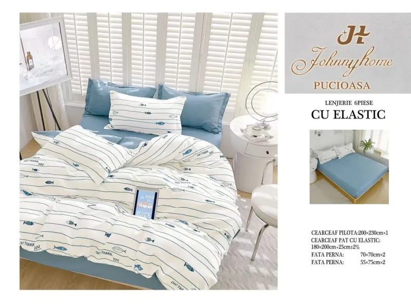 PUCIOASA Lenjerii de pat Finet 6 piese cu Elastic-T229 + CADOU