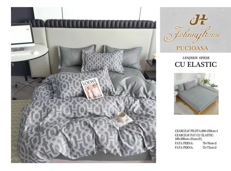 Lenjerii de pat Finet 6 piese cu Elastic- ,descoperă confortul și rafinamentul oferite de setul de lenjerie de pat tip finet, format din 6 piese, într-o nuanță elegantă. Această colecție excepțională este realizată dintr-un bumbac tratat special, conferind tesaturii sale o senzație moale și durabilitate remarcabilă în timp. Este alegerea perfectă pentru a-ți menține patul mereu proaspăt și impecabil.
