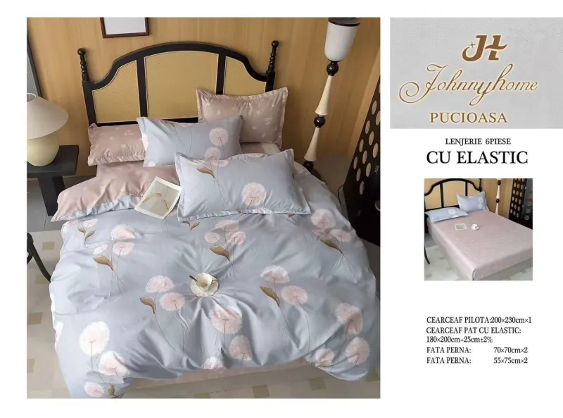 PUCIOASA Lenjerii de pat Finet 6 piese cu Elastic-T249 + CADOU