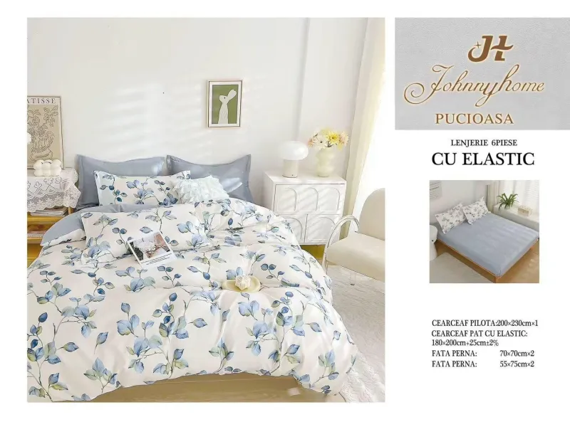 Această lenjerie din finet a transformat complet dormitorul! Materialul este moale și confortabil, iar elasticul este foarte practic. Arată minunat, exact ce-mi doream pentru un aspect îngrijit și plăcut.