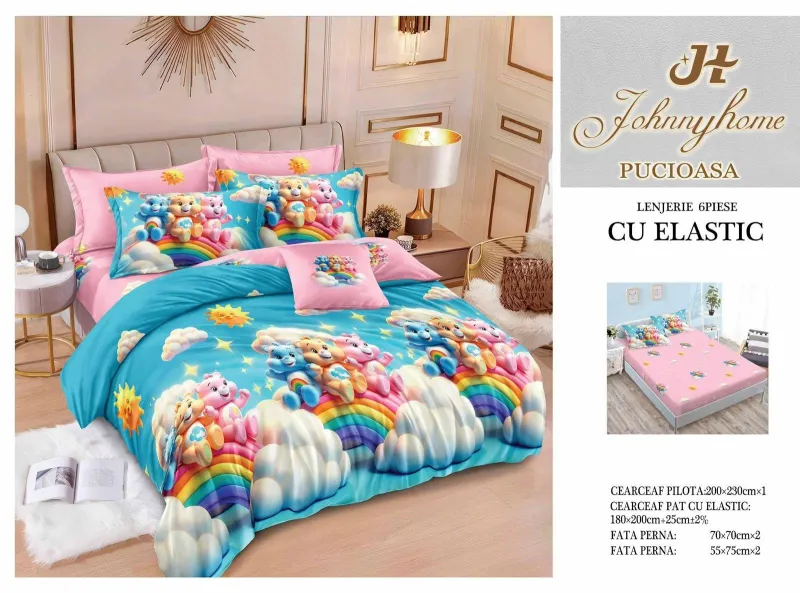 Lenjerii de pat Finet 6 piese cu Elastic-T298, descoperă confortul și rafinamentul oferite de setul de lenjerie de pat tip finet, format din 6 piese, într-o nuanță elegantă. Această colecție excepțională este realizată dintr-un bumbac tratat special, conferind tesaturii sale o senzație moale și durabilitate remarcabilă în timp. Este alegerea perfectă pentru a-ți menține patul mereu proaspăt și impecabil.