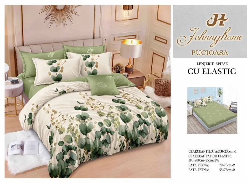 PUCIOASA Lenjerii de pat Finet 6 piese cu Elastic-T302 + CADOU