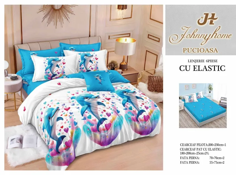 PUCIOASA Lenjerii de pat Finet 6 piese cu Elastic-T307 + CADOU