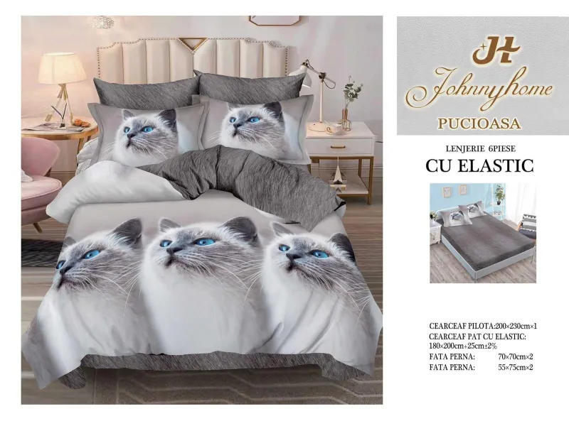 Lenjerii de pat Finet 6 piese cu Elastic-T66, descoperă confortul și rafinamentul oferite de setul de lenjerie de pat tip finet, format din 6 piese, într-o nuanță elegantă. Această colecție excepțională este realizată dintr-un bumbac tratat special, conferind tesaturii sale o senzație moale și durabilitate remarcabilă în timp. Este alegerea perfectă pentru a-ți menține patul mereu proaspăt și impecabil.