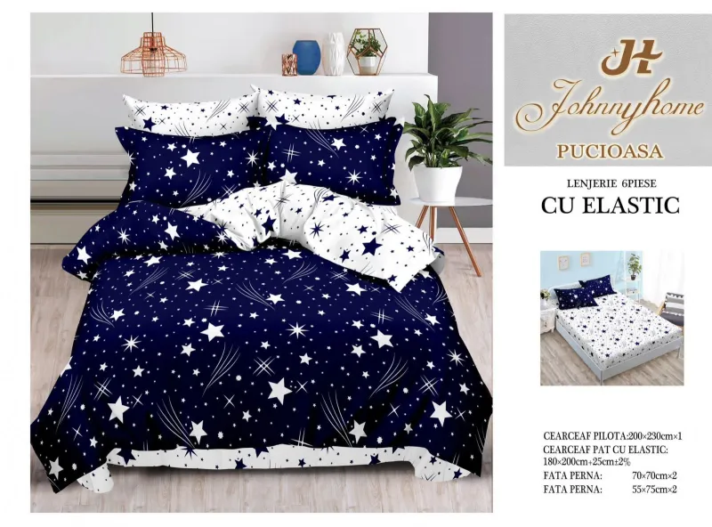 PUCIOASA Lenjerii de pat Finet 6 piese cu Elastic-T80 + CADOU