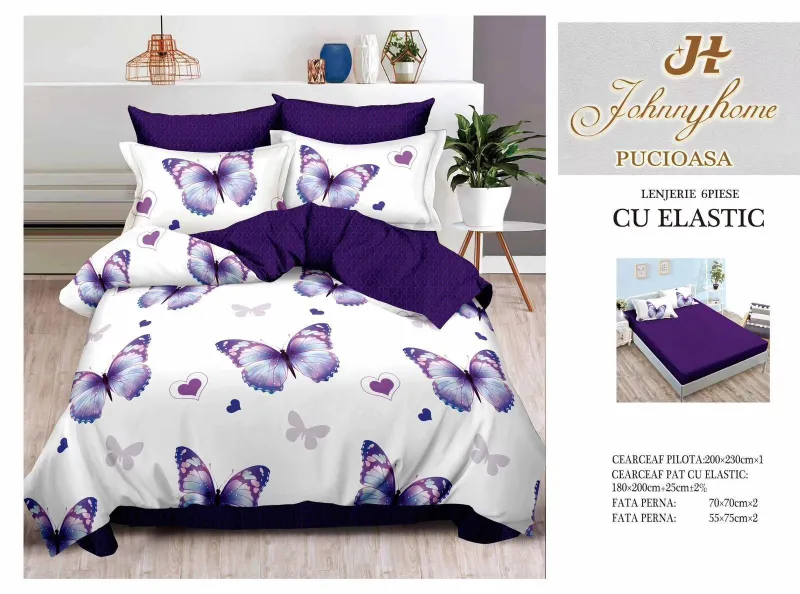 PUCIOASA Lenjerii de pat Finet 6 piese cu Elastic-T87 + CADOU