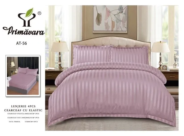 PRIMAVARA Lenjerie de pat Damasc,4 Piese,Cearceaf cu Elastic,Purpuriu-RP56 + CADOU