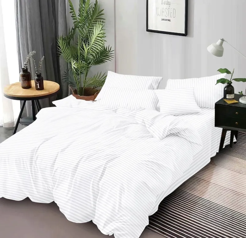 Lenjerie hotelieră dublă 6 piese Finet ste confectionata dintr-un amestec de fibre naturale si PES. Lenjeriile finet sunt folosite in special in industria hoteliera, oferind o rezistenta sporita in timp dar si confortul deosebit pentru un somn placut. Lenjeriile de pat confectinate din finet nu doar că sunt moi și extrem de plăcute la atingere, dar ele sunt și hipoalergenice. Astfel, chiar și cei mai sensibili și mai pretențioși clienți vor fi încântați de somnul plăcut și liniștit pe care îl vor experimenta în camera dvs de hotel!