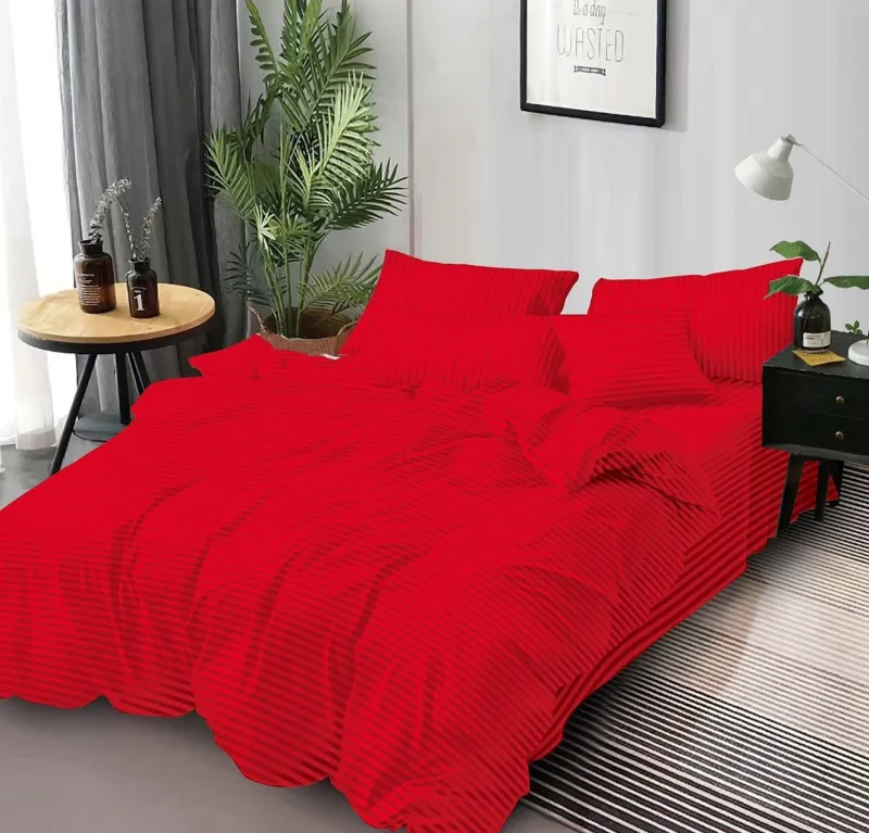 Lenjeria roșie din Damasc a adus exact schimbarea dorită în dormitor. Luciul subtil și materialul de calitate oferă un aspect sofisticat. Acum camera are o eleganță aparte, iar somnul este un adevărat răsfăț vizual și tactil.