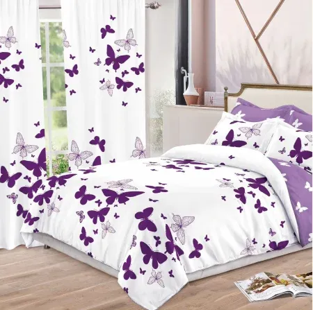 Cu setul Lenjerie de pat Finet, 6 piese+ 2 Draperii CADOU,Fluturi-FD02, primești tot ce ai nevoie pentru a oferi dormitorului tău un aspect complet nou și armonios. Pachetul conține o lenjerie de pat din finet, renumită pentru textura sa și confortul pe care îl oferă, alături de două draperii asortate, create special pentru a completa perfect designul. Materialul de calitate superioară este plăcut la atingere și rezistent, asigurându-ți un somn odihnitor și o întreținere fără efort.