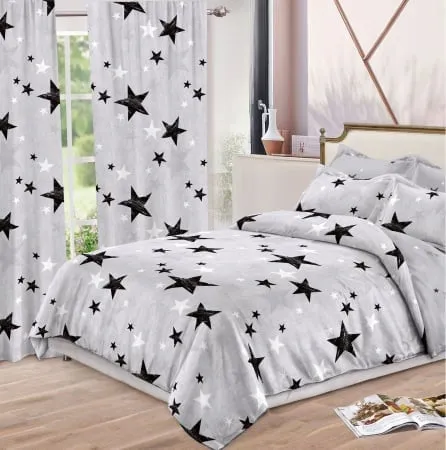 Cu setul Lenjerie de pat Finet, 6 piese+ 2 Draperii CADOU,Gri,Stelute-FD10, primești tot ce ai nevoie pentru a oferi dormitorului tău un aspect complet nou și armonios. Pachetul conține o lenjerie de pat din finet, renumită pentru textura sa și confortul pe care îl oferă, alături de două draperii asortate, create special pentru a completa perfect designul. Materialul de calitate superioară este plăcut la atingere și rezistent, asigurându-ți un somn odihnitor și o întreținere fără efort.