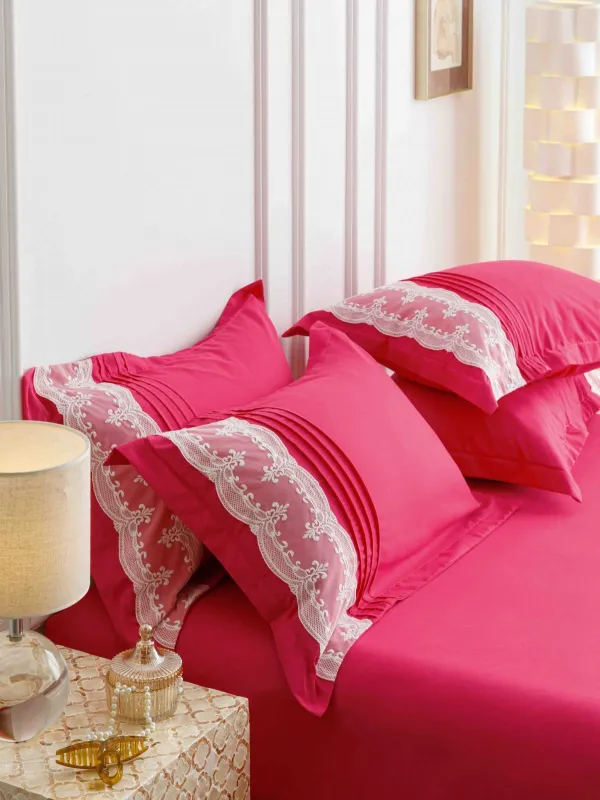 Pur și simplu ador noua lenjerie! Finetul este incredibil de moale și confortabil. Camera mea arată mult mai primitoare cu nuanța asta vibrantă de fucsia și cu delicatele inimioare brodate. Exact ce-mi doream!