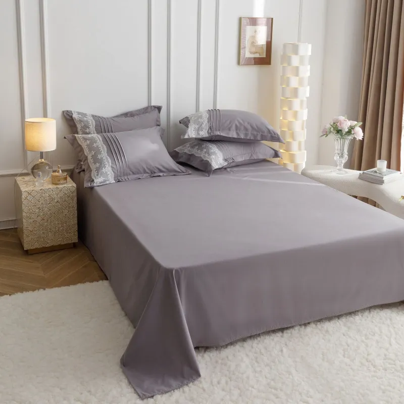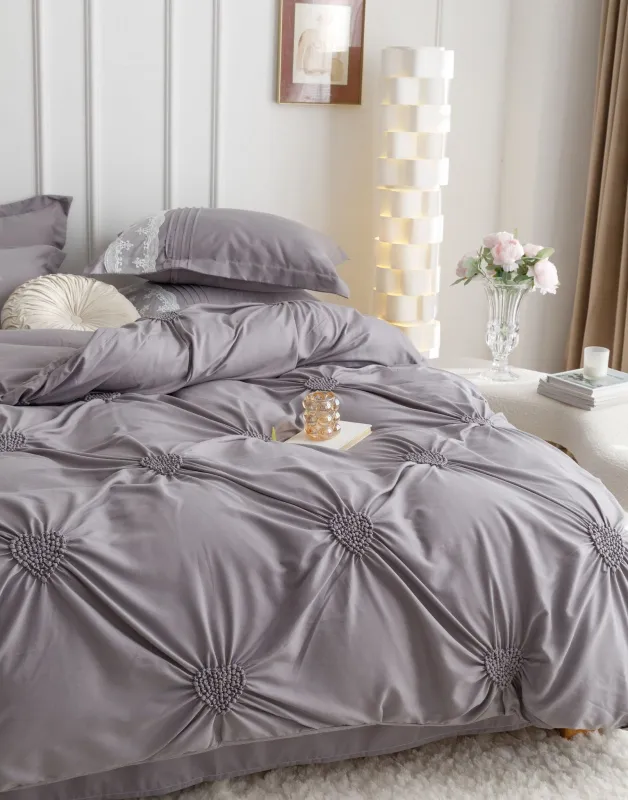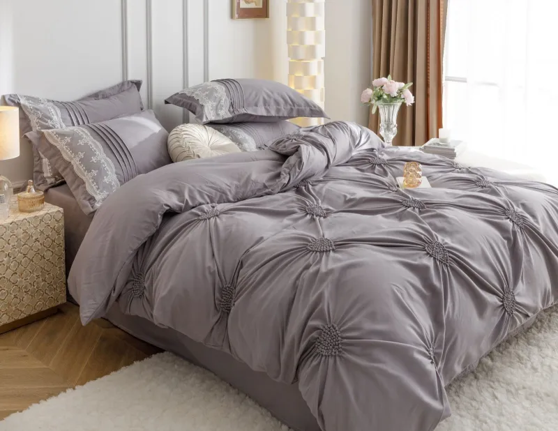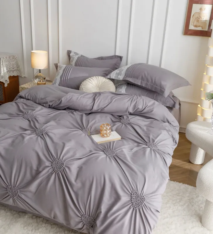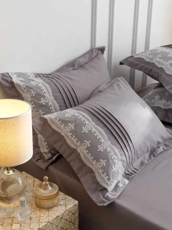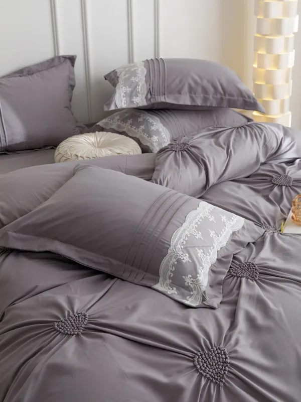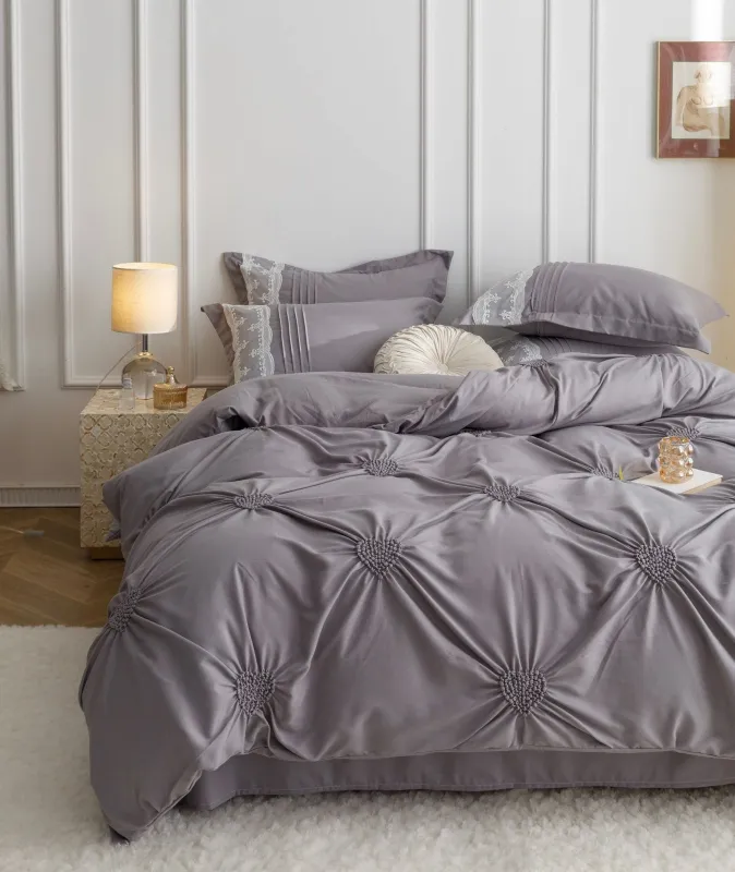 JOJO HOME Lenjerie de pat din finet, cu pliuri si inimioare brodate,Gri-BR12