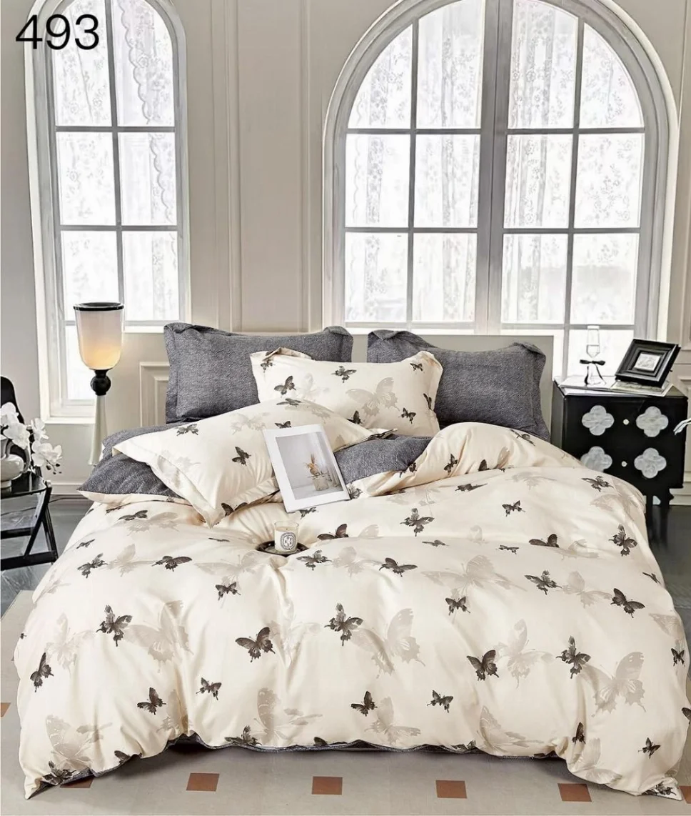 EAST COMFORT Lenjerie de pat 6 piese finet, crem cu fluturi gri și bej-GR493