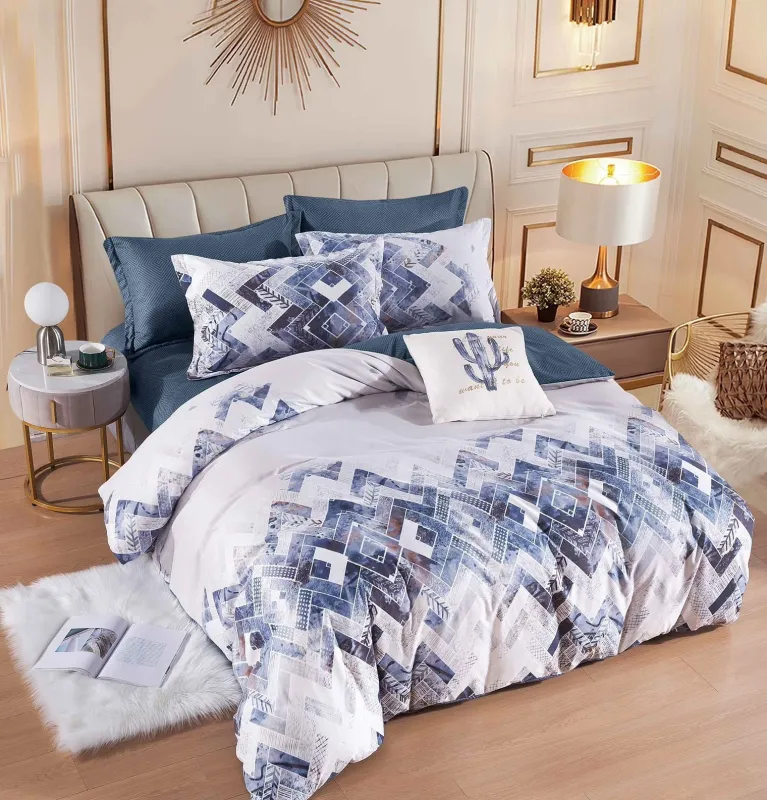 JOJO HOME Lenjerie de pat,6 Piese, finet,Albastru/Gri,Linii zig-zag-FJ190