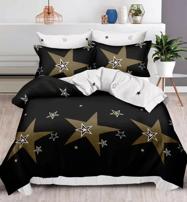 PUCIOASA Lenjerie de pat Finet Pucioasa 6 piese,Alb/Negru stelute aurii-R482