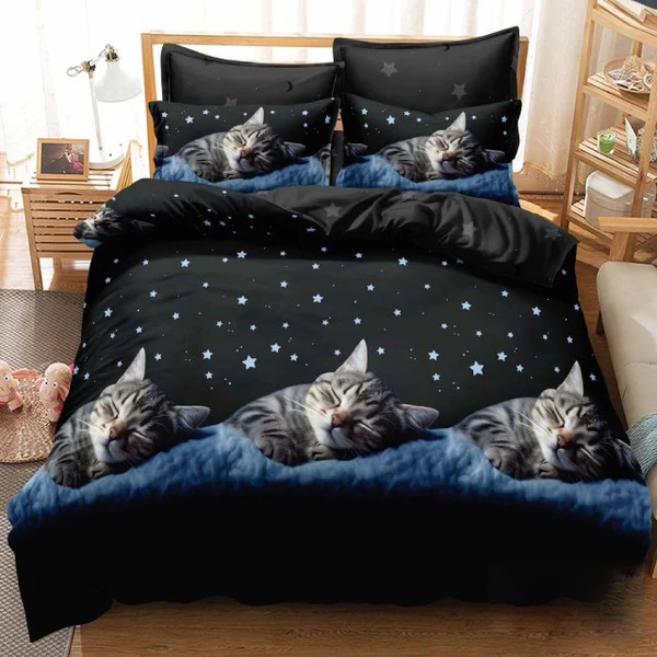 PUCIOASA Lenjerie de pat Finet Pucioasa 6 piese,cu imprimeu cer instelat si pisica-R612