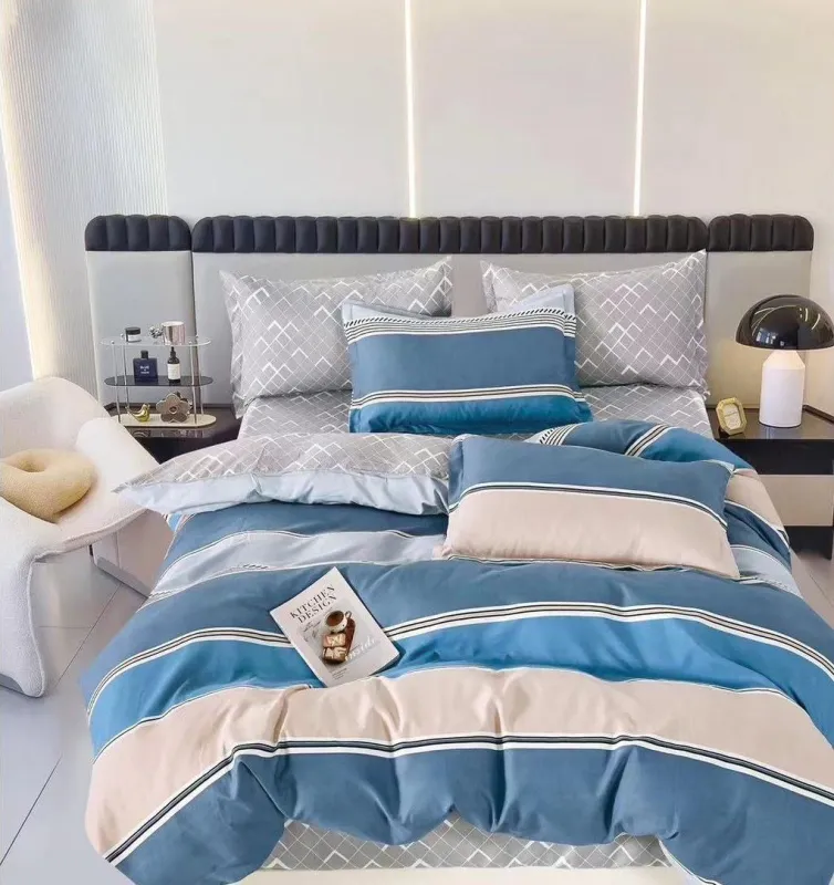 O lenjerie de vis! Modelul cu dungi gri și albastre a adus o notă de eleganță dormitorului. Finetul este extrem de plăcut la atingere, un adevărat răsfăț. Un cadou inspirat!