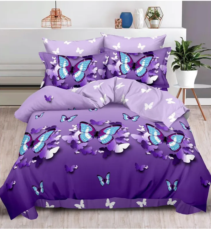 PUCIOASA Lenjerie de pat Finet Pucioasa 6 piese,Mov degrade cu fluturi albastri-R252