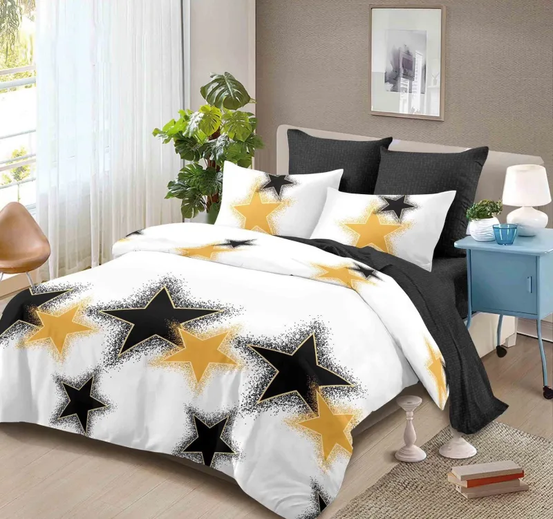 Dormitorul tău merită o transformare, iar cu o Lenjerie de pat Finet 6 piese Primavara,Negru/Alb ,Stelute-LC155, vei aduce un suflu nou de eleganță și confort. Conceput pentru a-ți oferi un somn odihnitor, acest set complet îți învăluie simțurile într-o textură fină și plăcută la atingere, noapte de noapte.