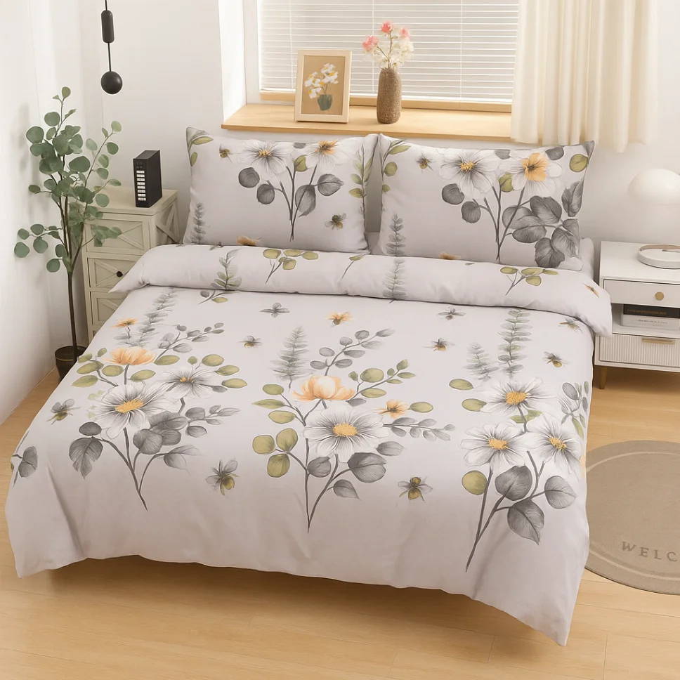 Transformă-ți dormitorul într-un refugiu de căldură și confort în zilele reci cu lenjeria de pat Lenjerie de pat Cocolino 4 piese, gri cu flori si albine-LN38. Creată special pentru a te răsfăța, este alegerea ideală pentru un somn profund și relaxant, noapte de noapte.