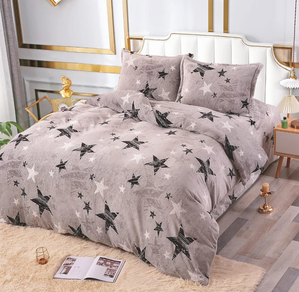 Transformă-ți dormitorul într-un refugiu de căldură și confort în zilele reci cu lenjeria de pat Lenjerie de pat Cocolino 4 piese, gri cu stele negre și albe-LN31. Creată special pentru a te răsfăța, este alegerea ideală pentru un somn profund și relaxant, noapte de noapte.