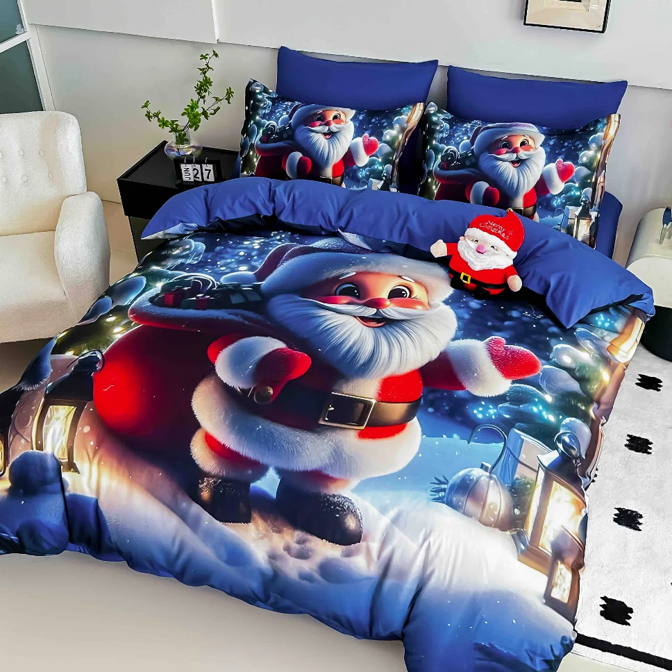 Transformă-ți dormitorul într-un sanctuar al relaxării cu această Lenjerie de pat din finet, albastru cu Moș Crăciun vesel-LD29 de înaltă calitate, creată special pentru patul tău dublu. Materialul fin și dens, plăcut la atingere, îți va oferi un somn odihnitor în fiecare noapte, învăluindu-te într-o senzație de confort absolut.