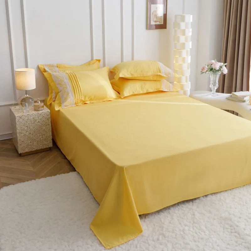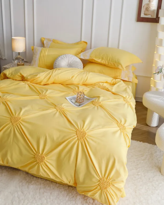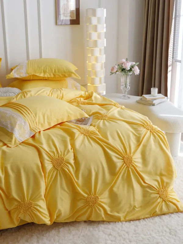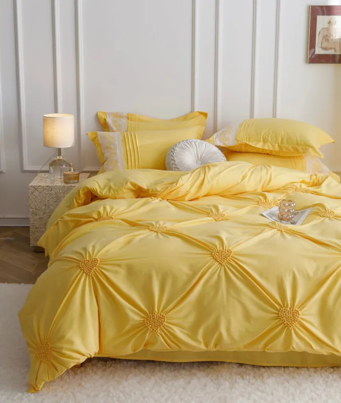JOJO HOME Lenjerie de pat din finet, cu pliuri si inimioare brodate,Galben-BR9