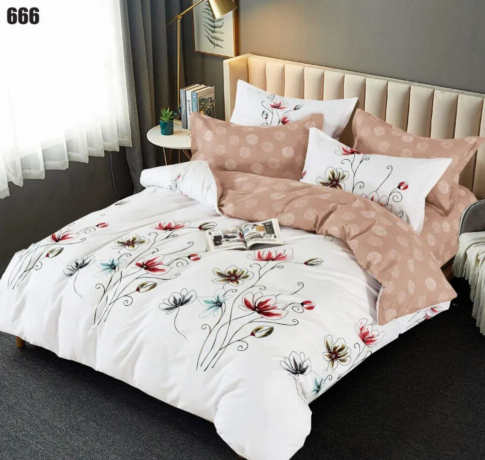 Lenjerie de pat Finet 6 piese, alb cu flori discrete bej-LP666 - Descoperă confortul și rafinamentul oferite de acest set de lenjerie de pat din finet, format din 6 piese. Colecția este realizată dintr-un material textil tratat special, conferind țesăturii o senzație moale la atingere și o durabilitate remarcabilă în timp.