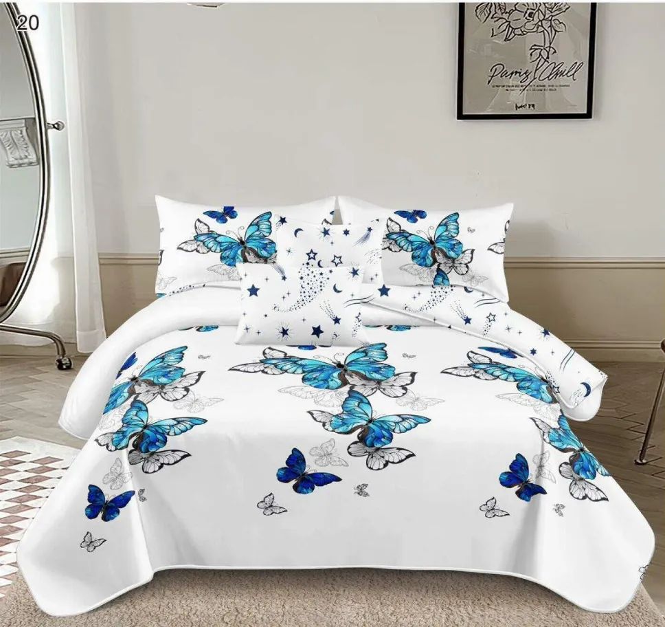 Cu lenjeria Lenjerie de pat Finet 6 piese, alb cu fluturi albaștri și argintii-LP20, transformi dormitorul tău într-o oază de confort și rafinament. Acest set complet, format din 6 piese, este creat dintr-un material textil special tratat pentru a-ți oferi o senzație unică de finețe la atingere și o rezistență de lungă durată.