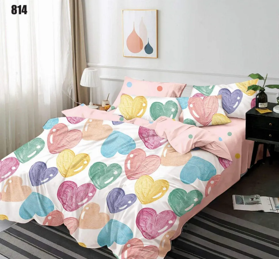 Lenjerie de pat Finet 6 piese, alb cu inimi colorate-LP814 - Descoperă confortul și rafinamentul oferite de acest set de lenjerie de pat din finet, format din 6 piese. Colecția este realizată dintr-un material textil tratat special, conferind țesăturii o senzație moale la atingere și o durabilitate remarcabilă în timp.