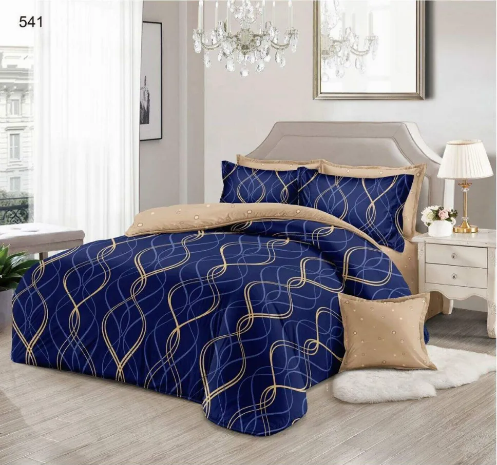 Lenjerie de pat Finet 6 piese, albastru cu fir auriu-LP541 - Descoperă confortul și rafinamentul oferite de acest set de lenjerie de pat din finet, format din 6 piese. Colecția este realizată dintr-un material textil tratat special, conferind țesăturii o senzație moale la atingere și o durabilitate remarcabilă în timp.