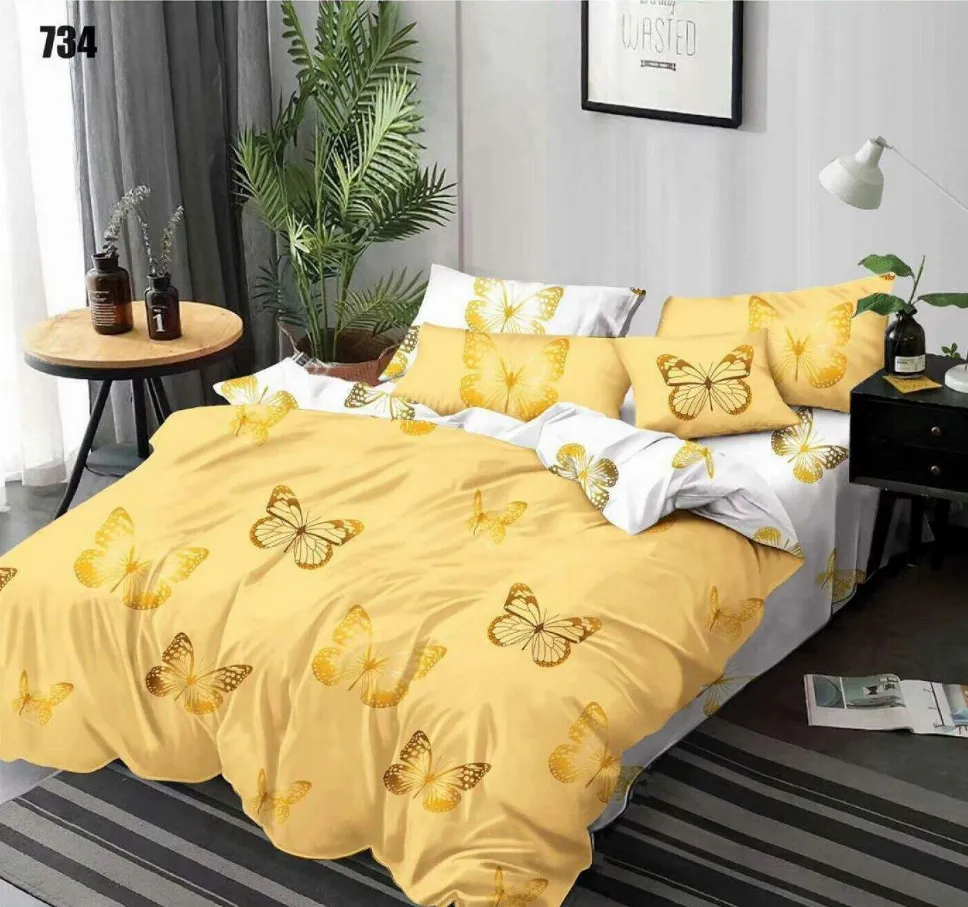 Lenjerie de pat Finet 6 piese, galben cu fluturi aurii-LP734 - Descoperă confortul și rafinamentul oferite de acest set de lenjerie de pat din finet, format din 6 piese. Colecția este realizată dintr-un material textil tratat special, conferind țesăturii o senzație moale la atingere și o durabilitate remarcabilă în timp.