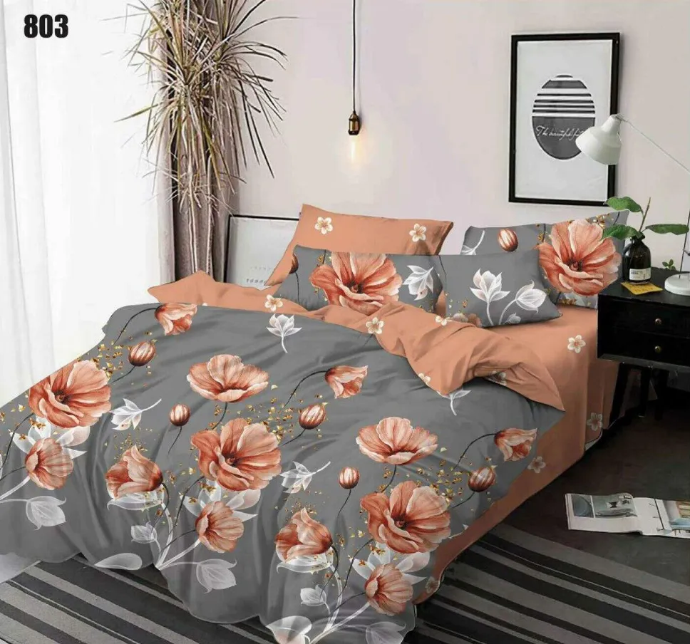 Lenjerie de pat Finet 6 piese, gri cu maci corai-LP803 - Descoperă confortul și rafinamentul oferite de acest set de lenjerie de pat din finet, format din 6 piese. Colecția este realizată dintr-un material textil tratat special, conferind țesăturii o senzație moale la atingere și o durabilitate remarcabilă în timp.