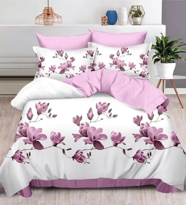 Eee, e așa fină lenjeria asta, de la Pucioasa! Alb cu roz, cu flori de magnolie... Parcă s-a schimbat toată camera. Și materialul... cred că o să reziste la spălat. Sper să-i placă și lui... e așa sensibil la texturi.