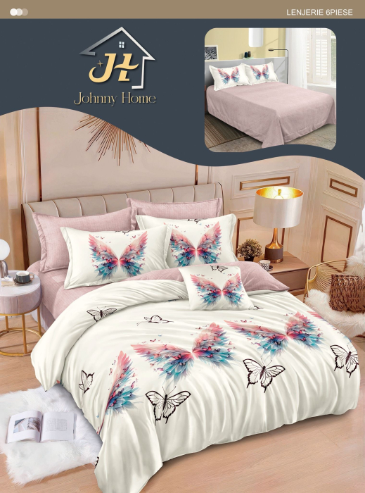 Visează la un confort desăvârșit și transformă-ți dormitorul într-un sanctuar al relaxării cu noua ta lenjerie de patLenjerie de pat Lenjerie de pat Finet Pucioasa 6 piese, imprimeu Fluturi in zbor-R630 Realizată din finet de calitate superioară, recunoscut pentru textura sa catifelată și moale, această lenjerie îți va învălui nopțile în cea mai plăcută senzație. Materialul este special tratat pentru a fi pufos și rezistent, asigurându-ți un somn liniștit și odihnitor. Cu un design modern și un set generos de 6 piese, lenjeria îmbracă perfect patul și adaugă o notă de rafinament decorului tău. Alege calitatea și confortul pentru tine sau oferă un cadou de neuitat celor dragi.