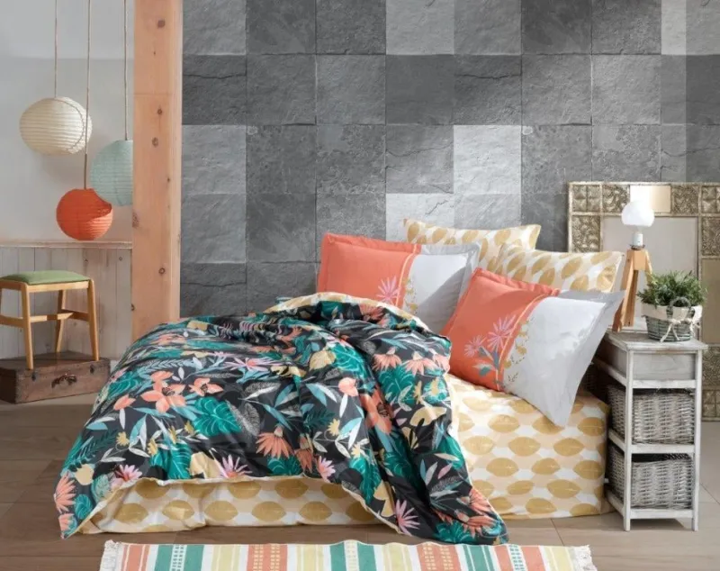 HOBBY HOME COLECTION Lenjerie Pat 2 Persoane Hobby Monstera – Orange-POP79