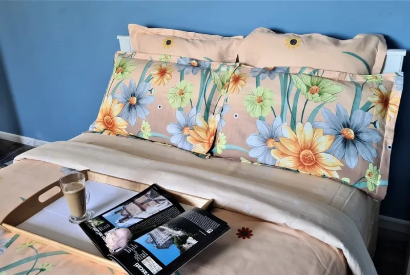 Sunt încântată de lenjerie! Finetul crem cu floricele de primăvară a transformat dormitorul într-un loc luminos și vesel. Materialul este moale și plăcut la atingere, un plus de confort pentru serile de relaxare.