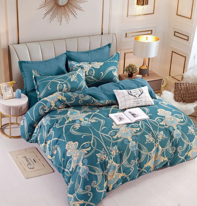 Transformă-ți dormitorul într-o oază de relaxare cu o Lenjerie de pat,6 Piese, finet,Turcoaz,model Baroc-FJ130. Realizată dintr-un material finet de calitate superioară, această lenjerie îți va învălui simțurile într-o textură moale și plăcută la atingere, asigurându-ți un somn odihnitor noapte de noapte. Materialul este special tratat pentru a-și păstra culorile vii și pentru a rezista la utilizări repetate, menținând aspectul proaspăt și îngrijit al patului tău.