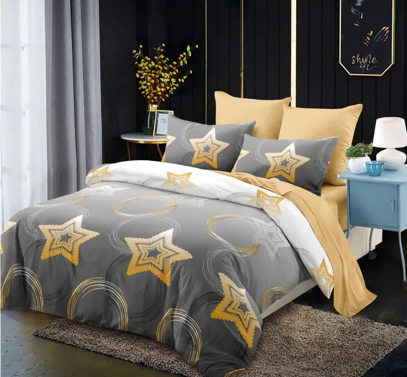 PRIMAVARA Lenjerie de pat Finet 6 piese Primavara,Bej/Gri cu Stelute aurii-LC112