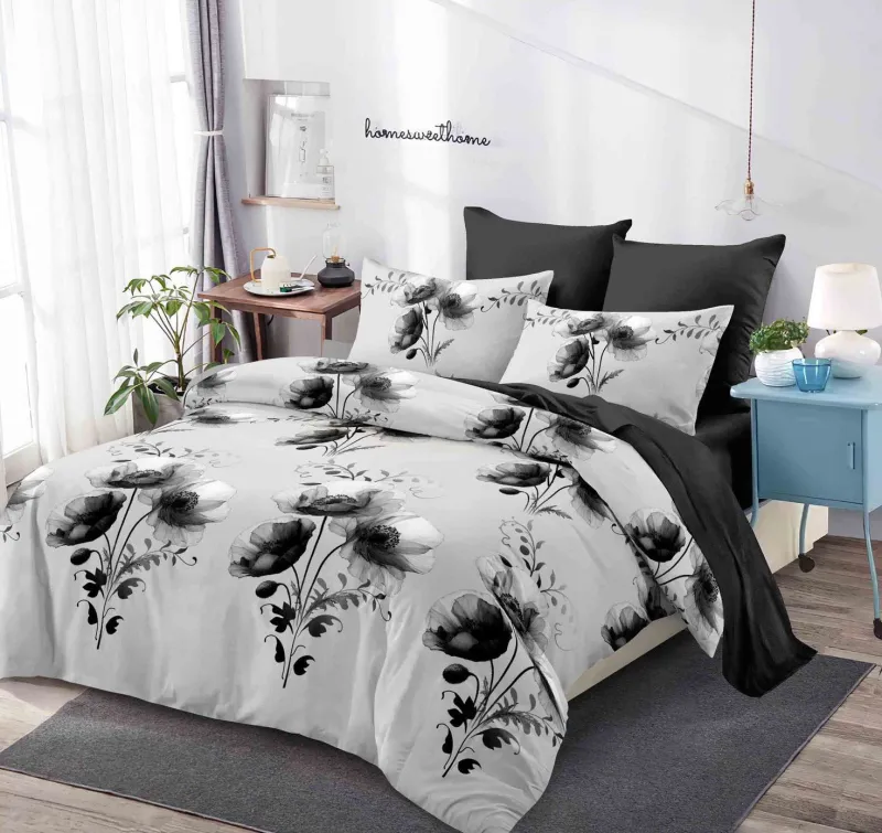 Dormitorul tău merită o transformare, iar cu o Lenjerie de pat Finet 6 piese Primavara,Gri/Negru cu Maci-LC172, vei aduce un suflu nou de eleganță și confort. Conceput pentru a-ți oferi un somn odihnitor, acest set complet îți învăluie simțurile într-o textură fină și plăcută la atingere, noapte de noapte.