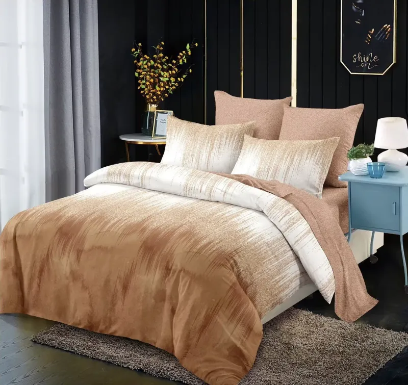 PRIMAVARA Lenjerie de pat Finet 6 piese Primavara,Maro degrade,linii-LC148
