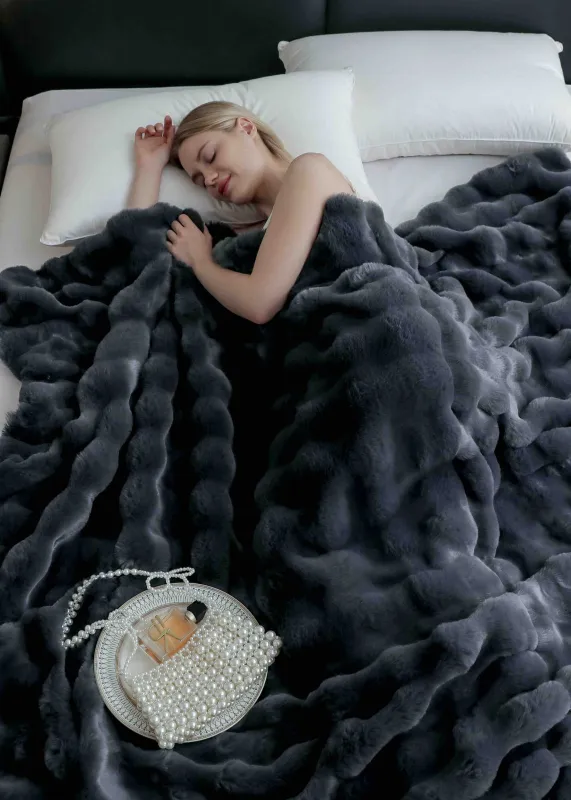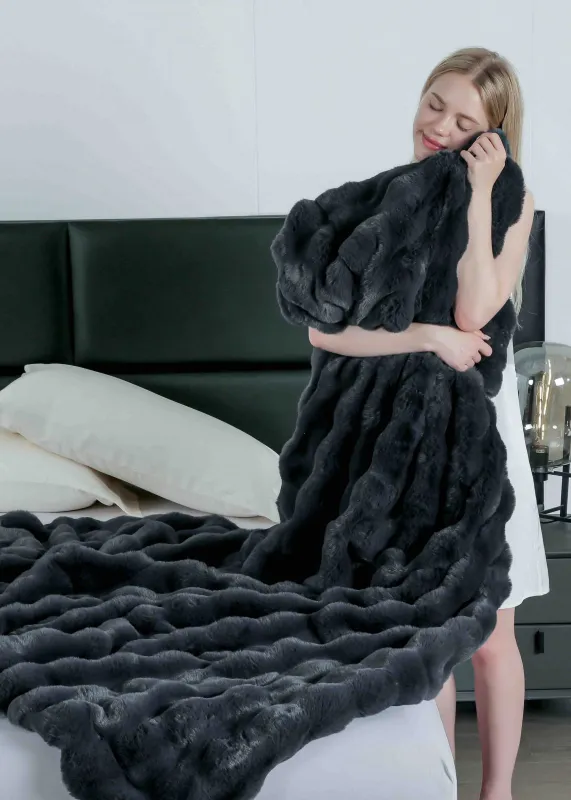 JOJO HOME Patura Cocolino Pufoasa Din Blana De Iepure, Gri inchis- BRA04