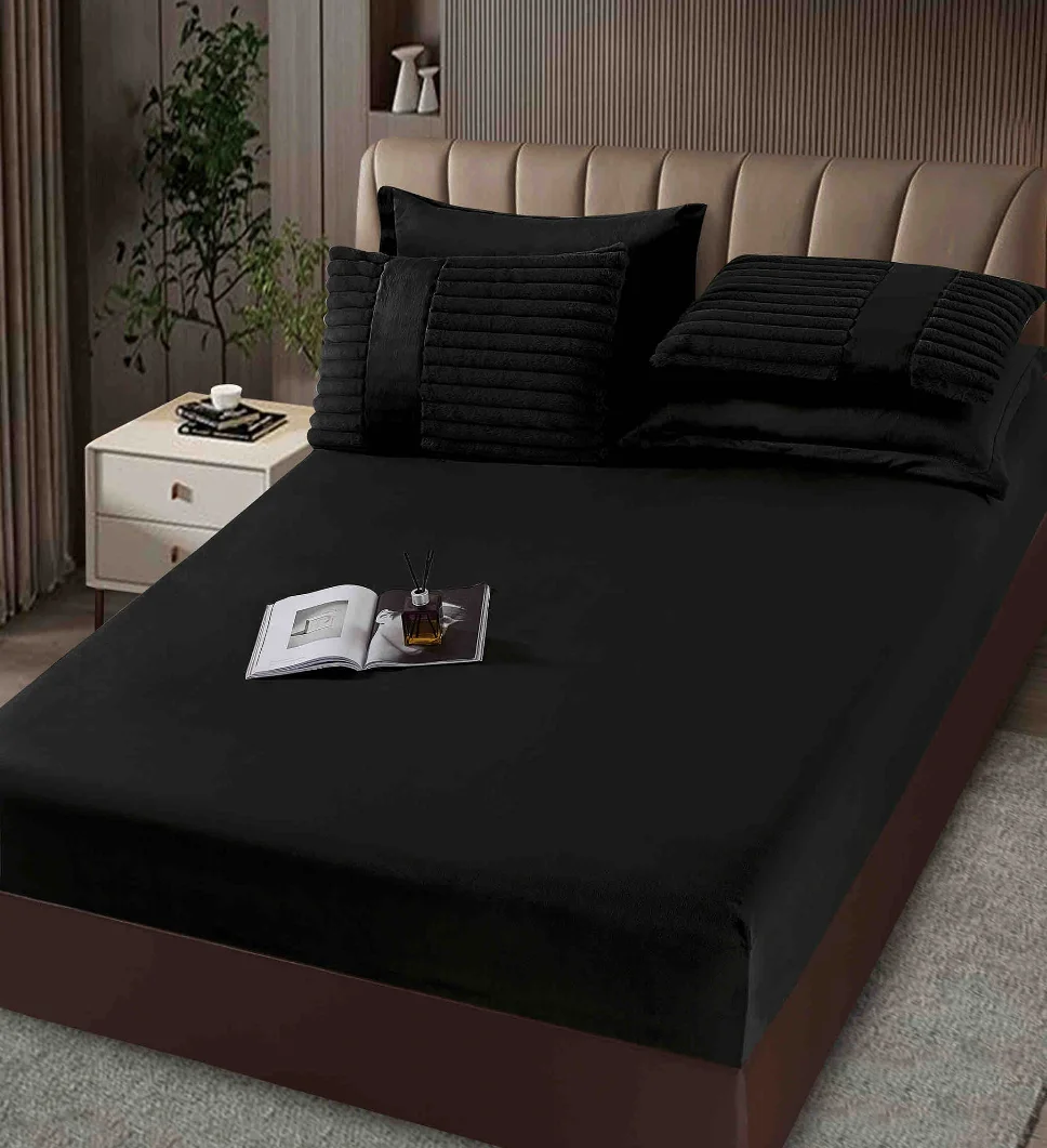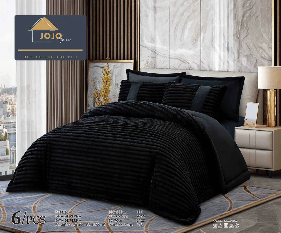 Descoperă confortul setului Lenjerie cu Pilota din Blanita artificiala de iepure si cearceaf cu elastic ,6 piese, negru cu striatii discrete-PBJ15