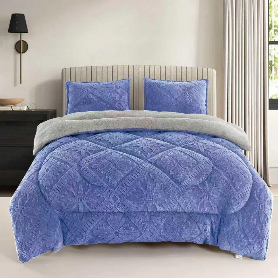 Învăluie-te în căldură și confort suprem cu pilota Pilota groasa cocolino cu blanita, lavanda cu flori reliefate-PCB121. Realizată dintr-un material Cocolino pufos și incredibil de moale la atingere, această pilotă este alegerea perfectă pentru a transforma nopțile reci în momente de relaxare totală și pentru a adăuga un strop de stil dormitorului tău.